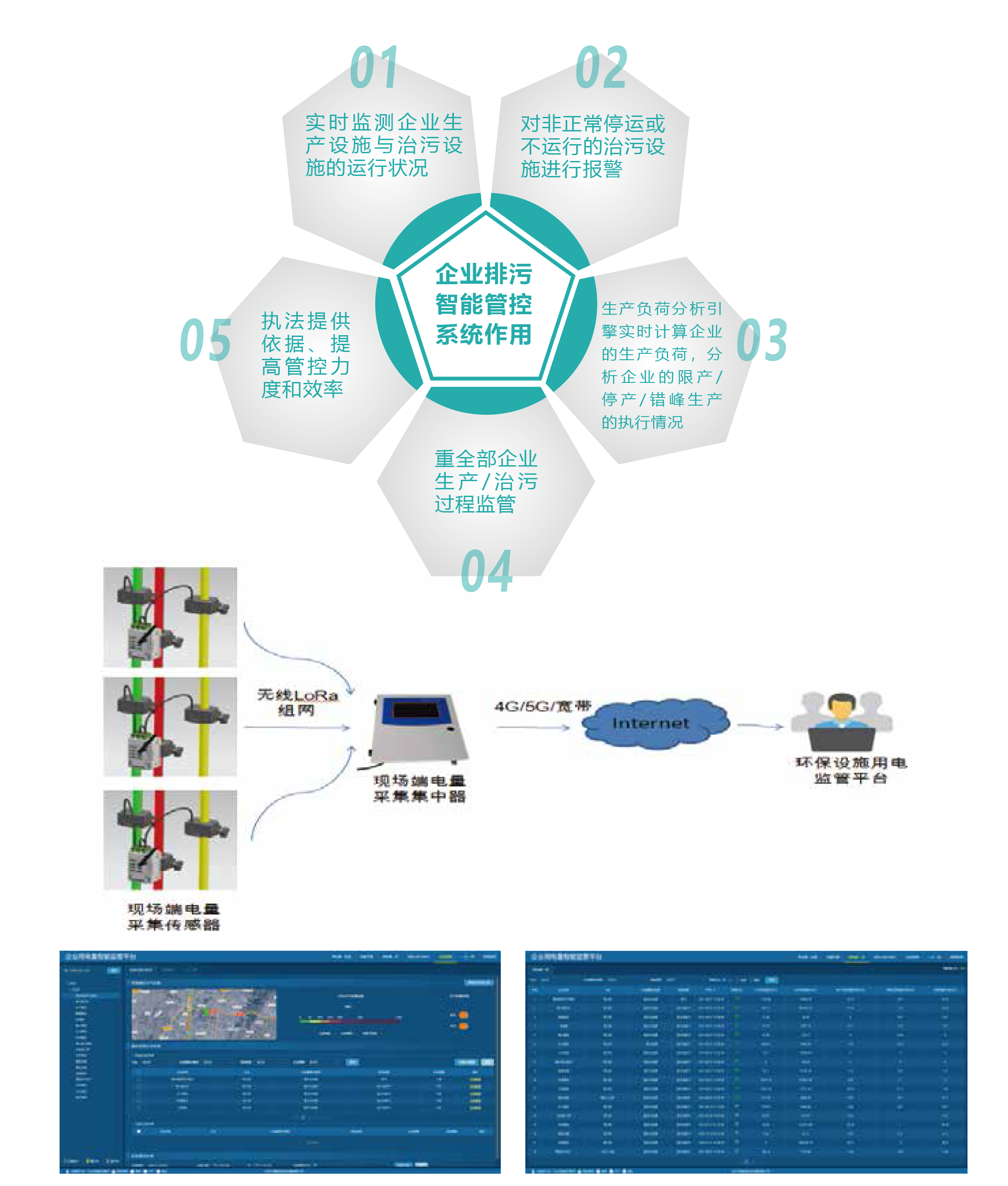 采用无线组网通讯技术,采集企业产污设施、治污设施用电量数据,